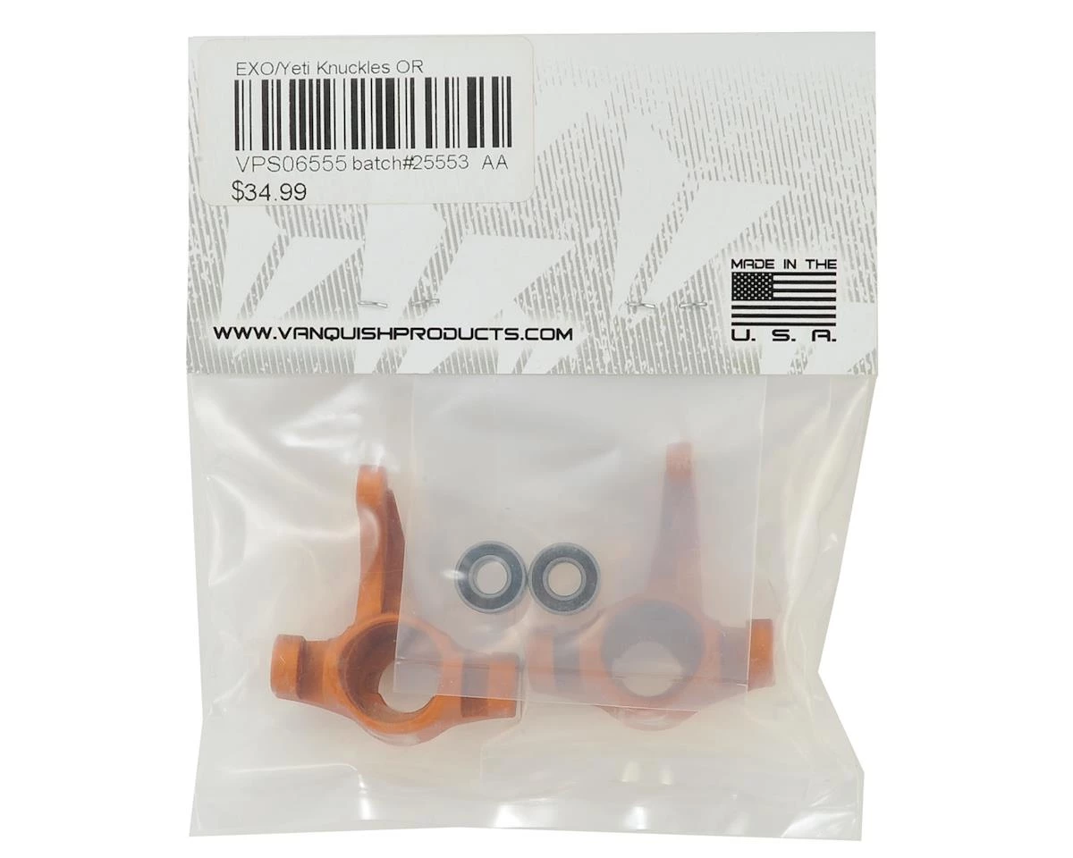 This is an optional Vanquish Products Aluminum Steering Knuckle Set, and is intended for use with the Axial Exo Terra buggy. These knuckles have been machined from 6061-T6 aluminum and use a larger 5x11x4mm outer axle bearing for durability.