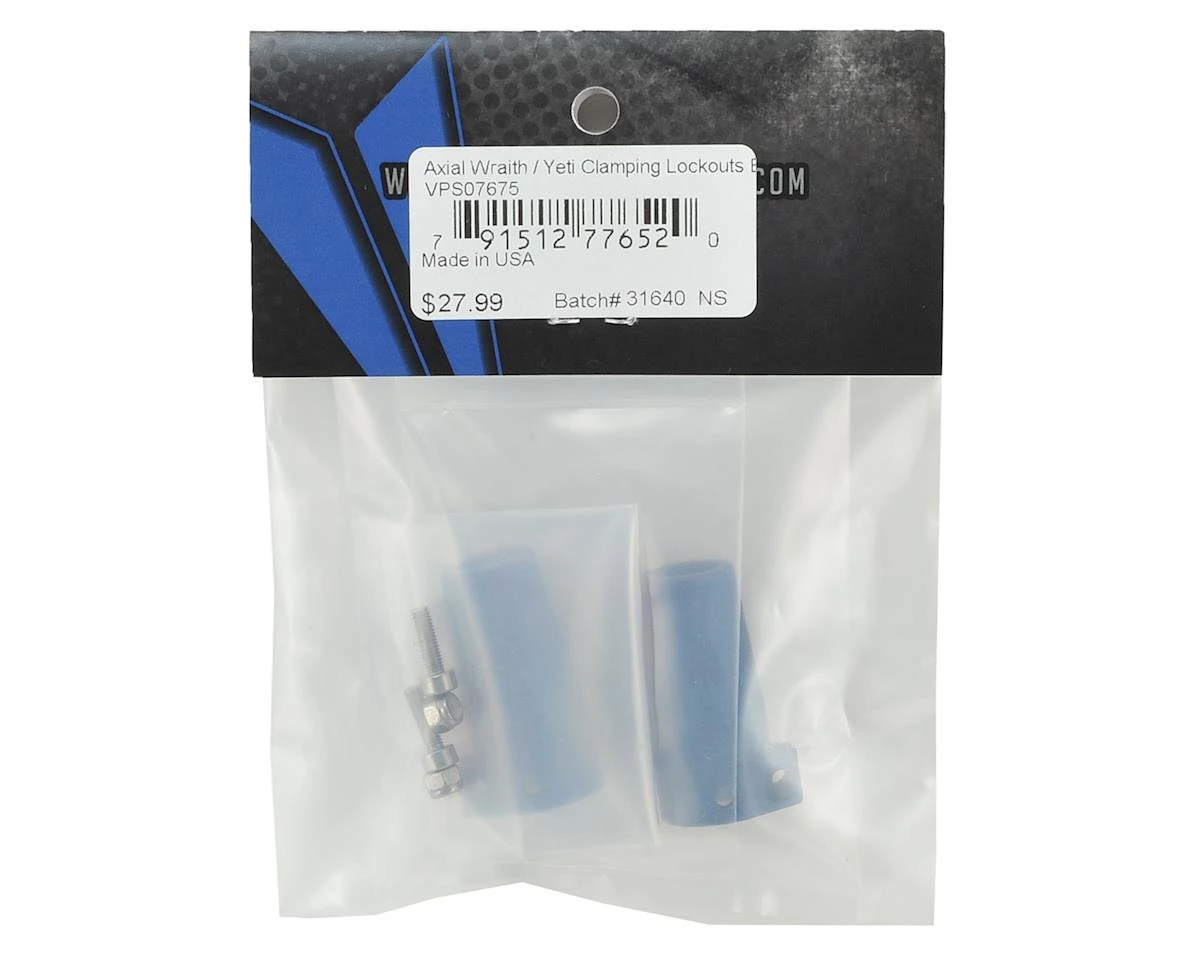 These lockouts are a direct bolt-on part for the Wraith and Yeti and provide additional clamping power with zero slop. They also provide great looks and matching anodize for any existing Vanquish parts on your rig.Â