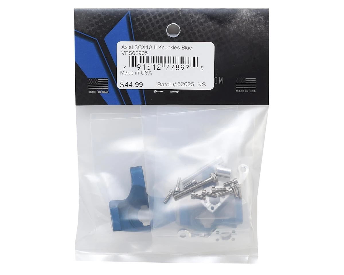 The Vanquish Products Axial SCX10 II Steering Knuckles are fully compatible with the stock link geometry and deliver a scale appearance, with a double shear support arm for durability.