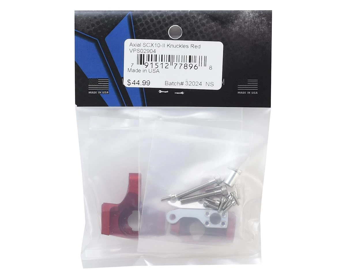The Vanquish Products Axial SCX10 II Steering Knuckles are fully compatible with the stock link geometry and deliver a scale appearance, with a double shear support arm for durability.