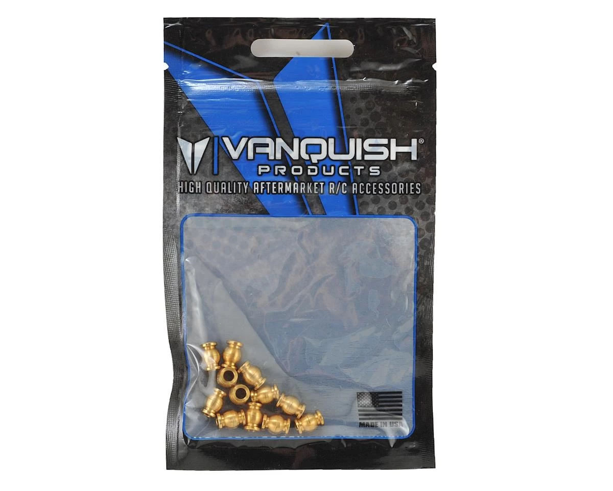 Vanquish Brass Pivot Balls fit in Traxxas Revo rod ends and are designed to be the width of Axials pivot balls. This reduces the slop that can be found when using Traxxas Revo ends on parts designed for Axial pivot balls.