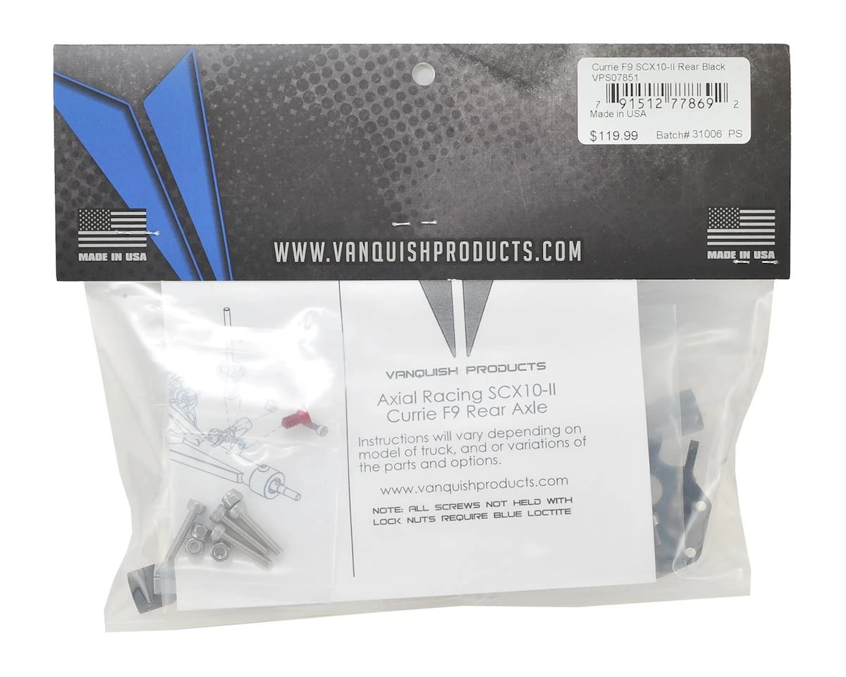 - Vanquish Products Currie F9 Aluminum Axle for Axial SCX10-II and VS410 trucks