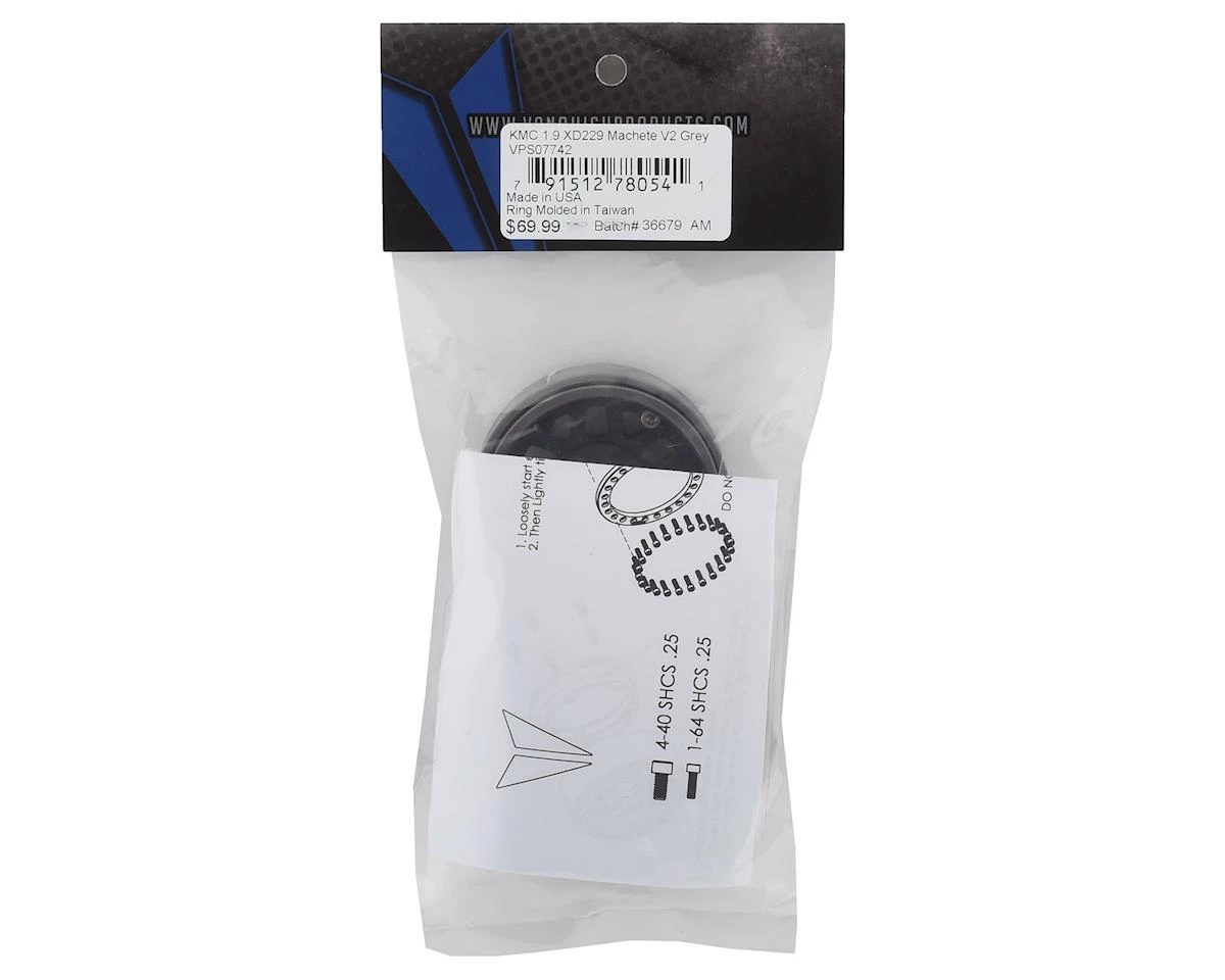 Vanquish Products KMC XD229 Machete V2 1.9″ Wheels are officially licensed KMC XD Series replicas. These V2 models feature a more scale looking center section for improved realism, as well as molded plastic clamp rings to help reduce weight without sacrificing strength. For the ultimate in scale looks, pair these wheels with the Vanquish Products XD Series Center Hubs (VPS07720 – black/VPS07721 – silver).