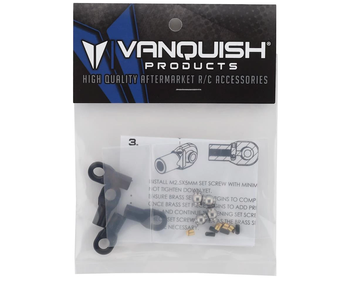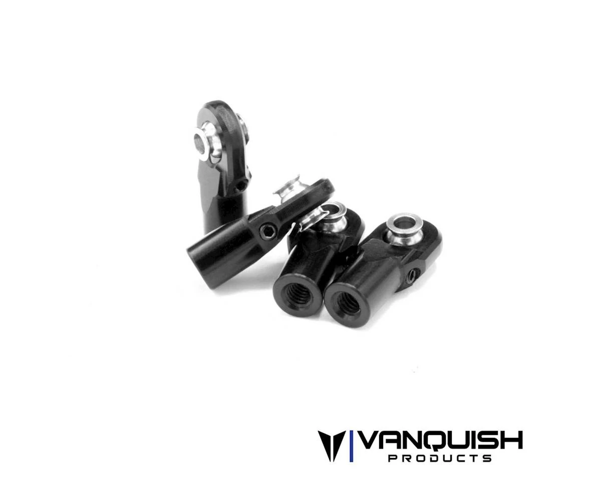 Vanquish Products M4 Machined Straight Rod Ends are the much needed solution for traditional molded rod ends. These do not use a pressed design like most metal rod ends. These are designed to fit in place of the Incision Rod Ends (IRC00010), so the overall assembled length of the link is unchanged. Based on the design made popular by VP machined trailing arms, these rod ends feature an adjustable tension system to retain the pivot ball into the rod end, creating a more durable option that is fully rebuildable. An M2.5 set screw applies pressure to the tension set piece, allowing you to readjust as parts wear over time. Â