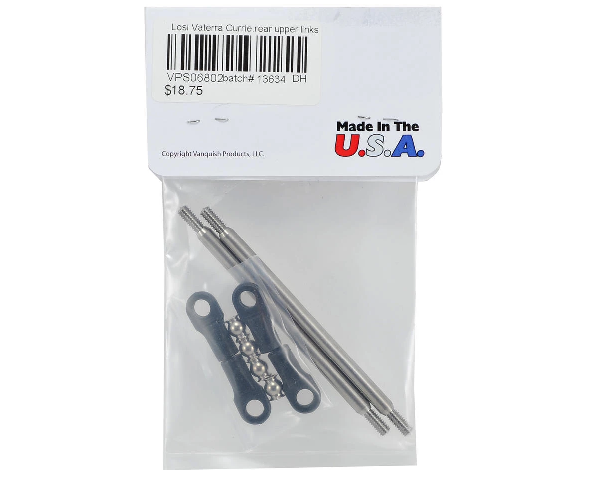 This is an optional Vanquish Products Titanium “Currie” Upper Link Set and is intended for use with the Vaterra Twin Hammers truck. These links will allow you to install the Vanquish Products Currie axles on your Twin Hammers rig, for improved scale looks and increased performance.