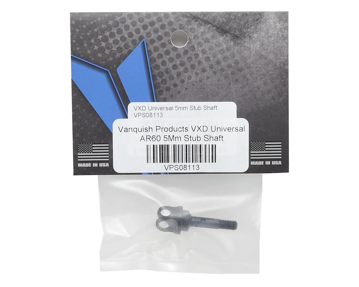 The Vanquish VXD Universal AR60 5mm Stub Shaft is a replacement for vehicles equipped with the optional Vanquish VXD Universal AR60 Axle Set (VPS08110). Package includes one stub shaft.