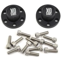Vanquish Products Aluminum XD Series Center Hubs are the perfect compliment to Vanquish KMC Enduro 1.9 and 2.2 wheels, as well as KMC XD127 Bully 1.9 wheels. These hubs are installed between the wheel and SLW hub and are secured in place with the included screws. The hubs add a .100 offset per side and create a scale look that cannot be matched by other designs.