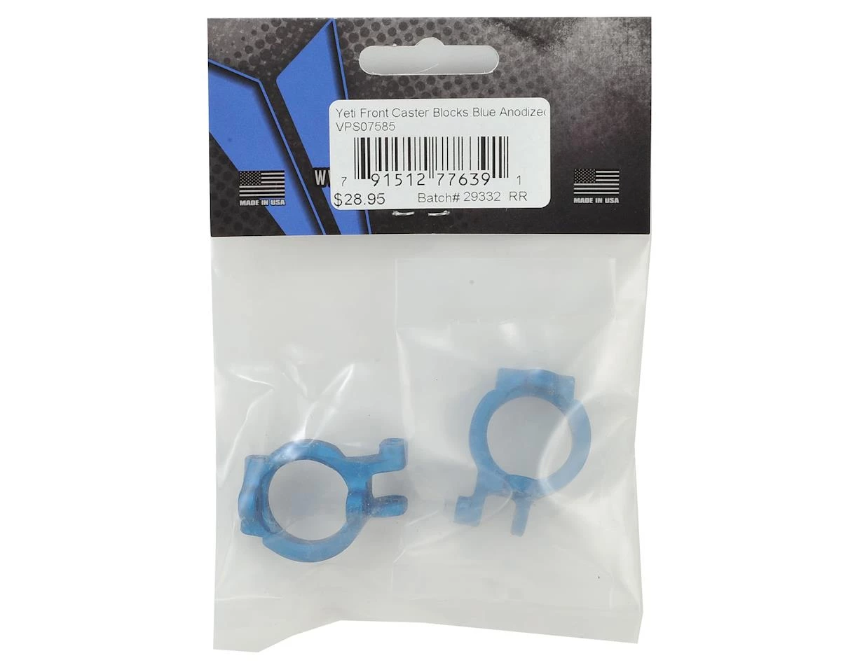 This is an optional Vanquish Yeti Front Castor Block Set. These aluminum front caster blocks are much stronger than the stock parts and are a direct fit upgrade for your Yeti rig.
